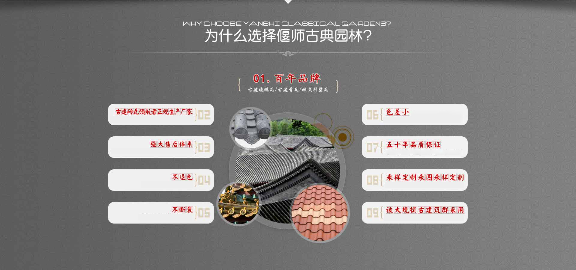 我公司專業(yè)生產古建琉璃瓦、青磚、青瓦等仿古建材,質優(yōu)價廉,是一家質量信得過、實力雄厚的廠家。